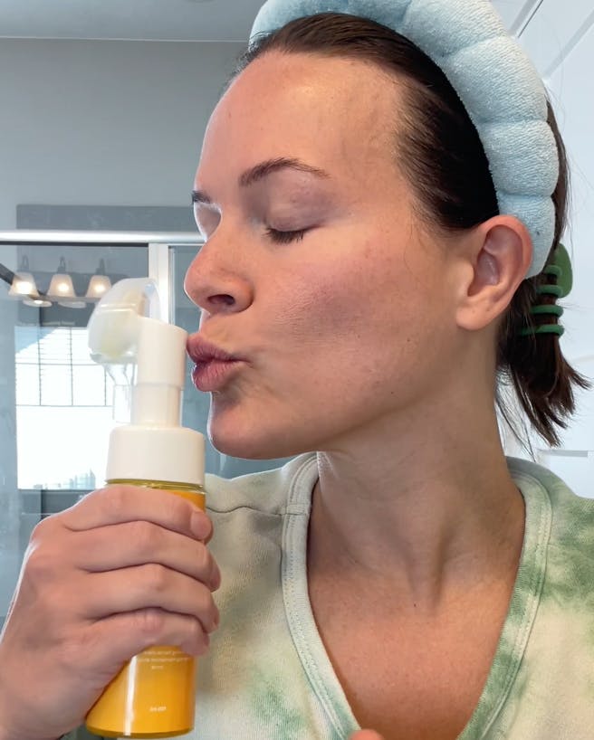 Use a small amount of Foam and gently scrub your skin in circular motions.