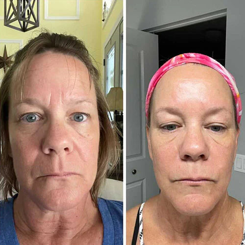I got rid of the wrinkles on my forehead and noticed a much more glowing complexion. I’m 49 years old and thrilled with the results!